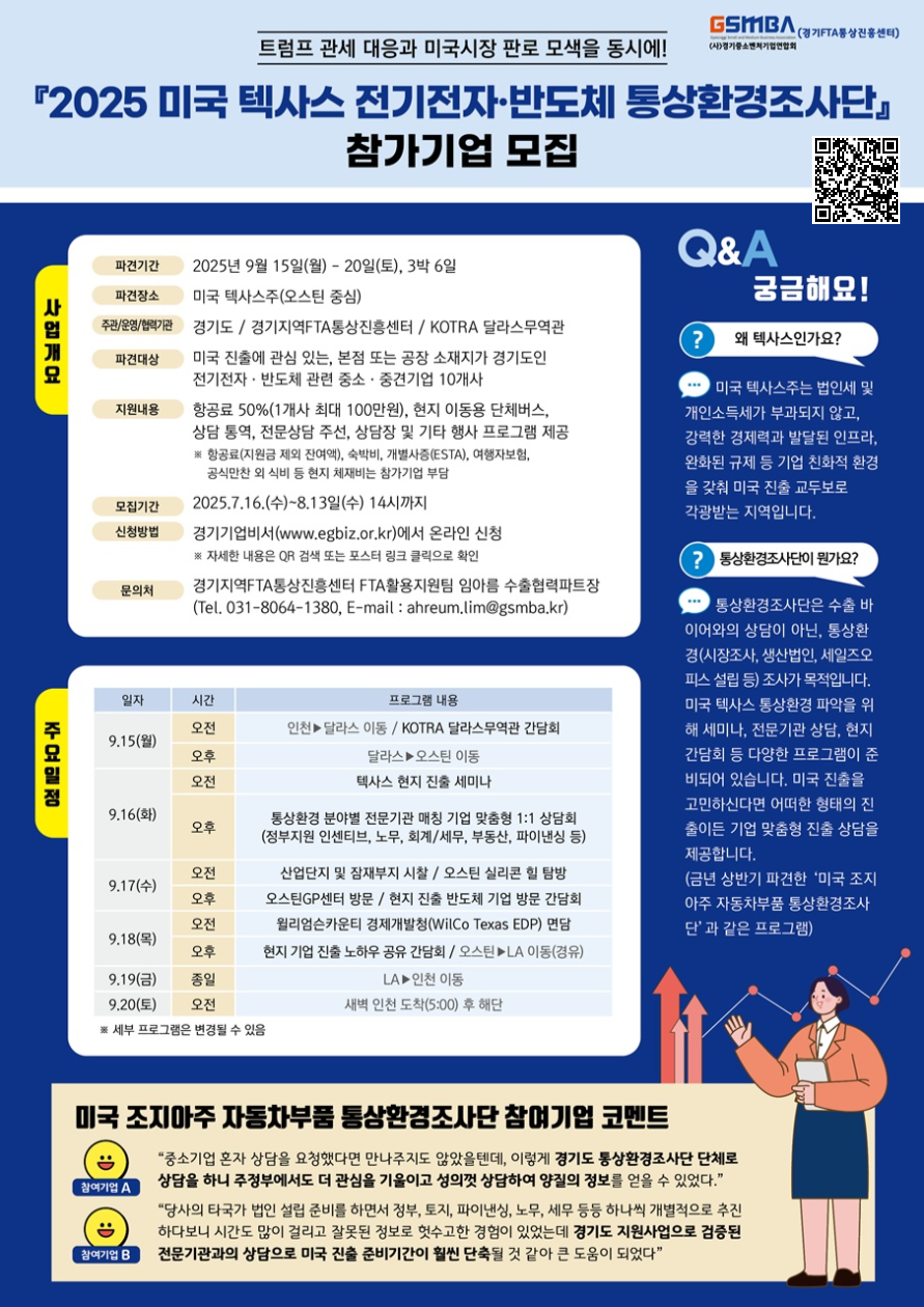 [경기FTA통상진흥센터] 2025 미국 텍사스 전기전자·반도체 통상환경조사단 참가기업 모집